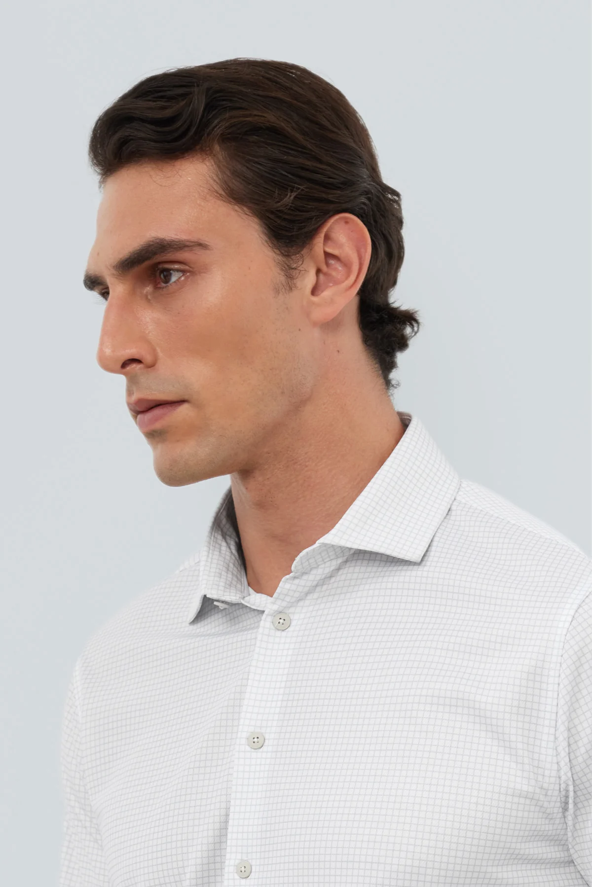 Camisa de vestir cuello cutaway hombre estampado cuadro gris regular